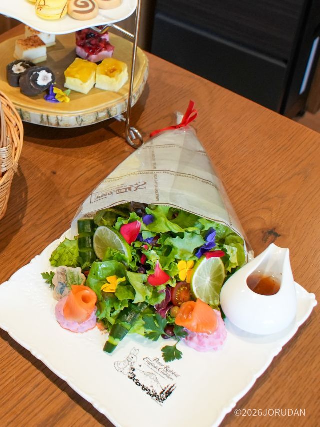 そのほか「マクレガーおじさんのとれたて野菜のブーケサラダ」色とりどりの野菜やスモークサーモンを花束のように美しく盛り付けた、春の訪れを感じさせる一品も。心もお腹も、富士芝桜まつりで満たしましょう。
