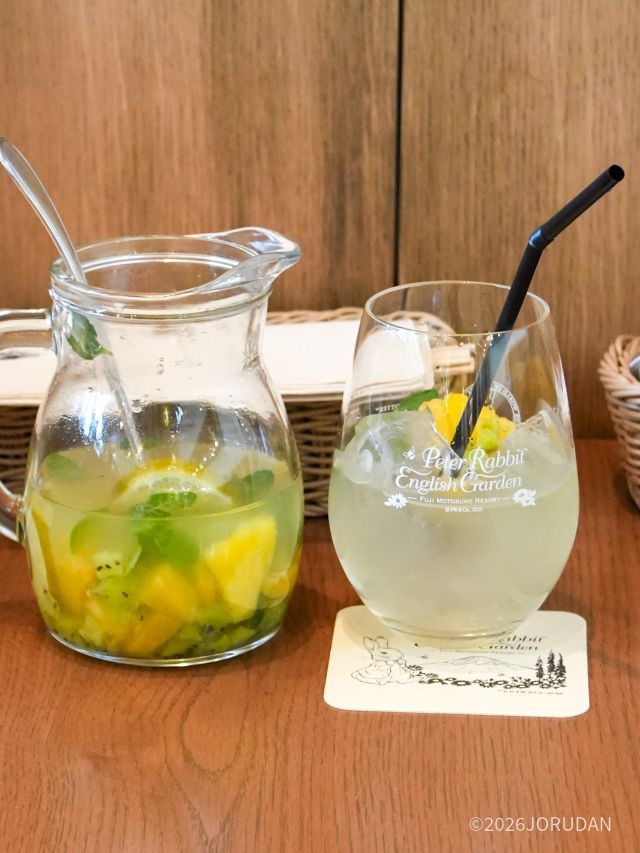 写真奥にある飲み物はその名も「あまいみず」。キウイやパイン、レモンといった柑橘類の果物にハーブ水を合わせた、さわやかな香りが広がるすっきりとしたドリンクです。
