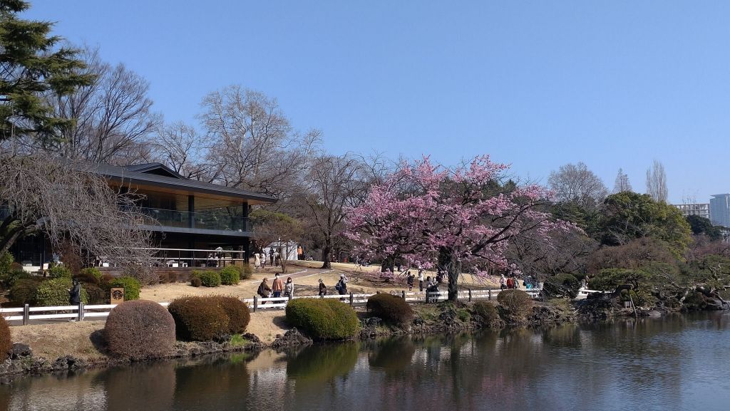 新宿御苑の今年の桜は昨年・一昨年に比べて少し開花が遅れています。翔天亭そばの寒桜やレストランゆりのき前の河津桜は咲き始めといったところ。寒桜は日の当たりやすい、木の上のほうから開花が進んでいます。