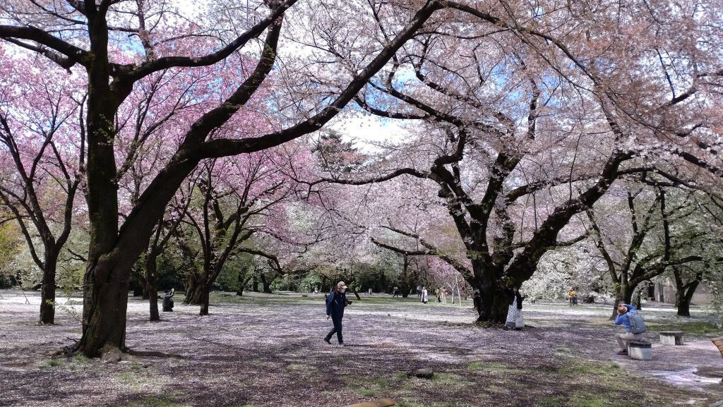 長雨が抜けてお日様がやっと顔を出し、春らしい天気になりつつある新宿です。昨日まで降り続いた冷たい雨が花を散らしてしまうのでは、と心配でしたが、新宿御苑の桜はそれほど影響がないように見られました。新宿御苑ではまだまだ桜を楽しむことができます。
