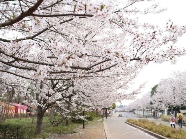 清水公園の横を通る道路の桜のトンネルはオススメです!空を埋めるような大きな桜並木の中を通ることができ、昔の木のアンバランスな曲がった幹が趣きを感じさせます。