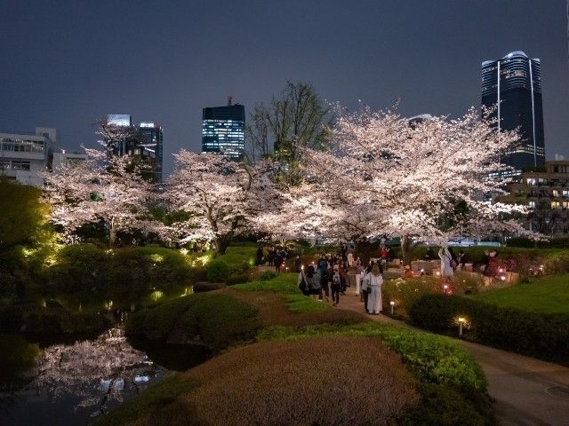 毛利庭園に咲く7本のソメイヨシノは六本木ヒルズの開発前から根をおろす老木で、毛利庭園のシンボル的存在。また、六本木けやき坂通りと平行する六本木さくら坂にはソメイヨシノ75本が並び、約400mの桜並木となっている。