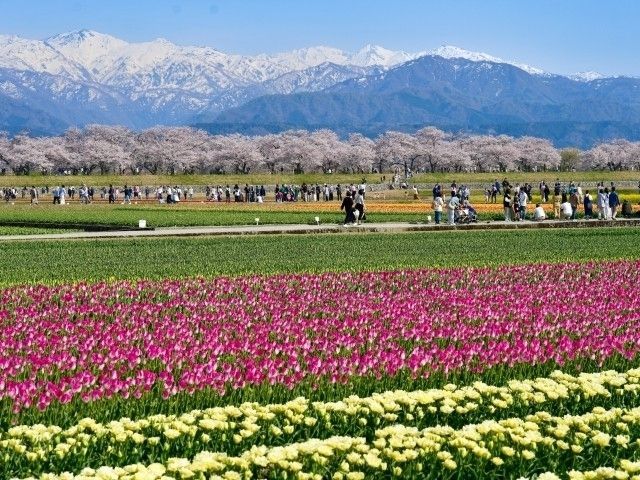 桜やチューリップが咲き誇る、富山屈指の花見スポット
