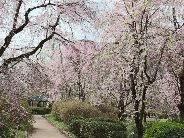 多くあり、中でも源平垂枝桜(!?)が色も形も素敵でした。