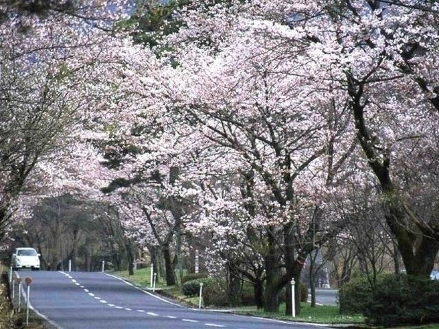 「文芸の小径」から報恩峠までの約500m区間は、県道の両側にソメイヨシノ、ヤエザクラなど5種、約500本の桜が植えられている。4月上旬には、桜のトンネルができ、見事な景観になる。