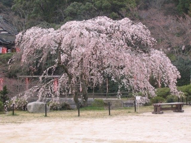 山全体を染める桜とシダレザクラの大木が見事