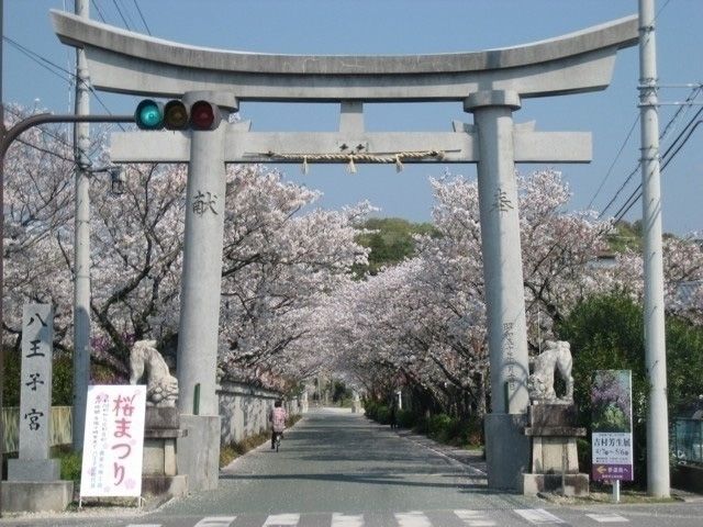 室町時代、近江の国から山田氏の家臣、野口総左衛門が勧請したと伝えられる八王子宮は、参道を含め約130本のソメイヨシノが咲き誇り、古くから桜の名所として親しまれている。また、八王子宮の隣にある八王子公園でもシダレザクラが楽しめる。