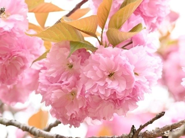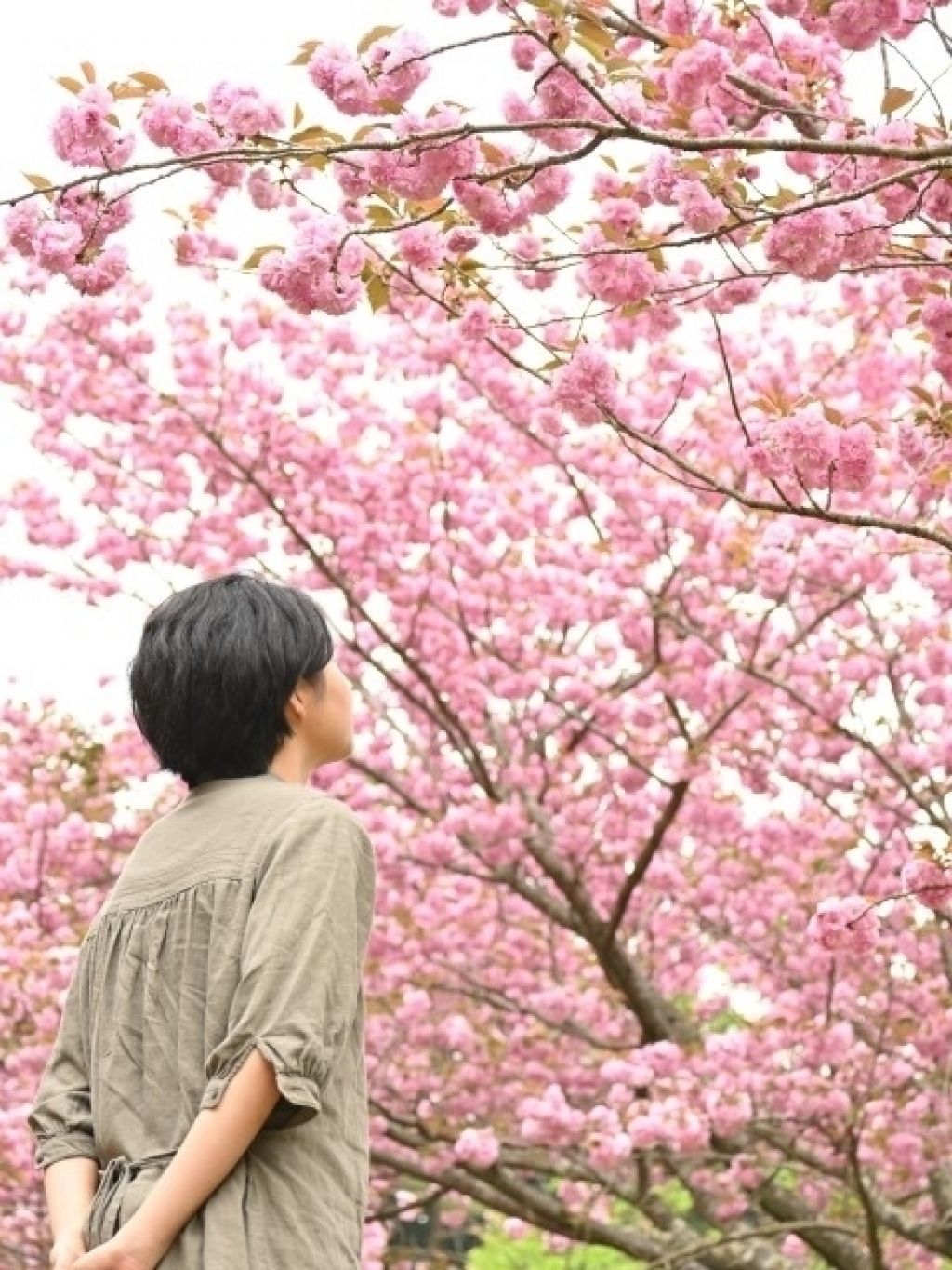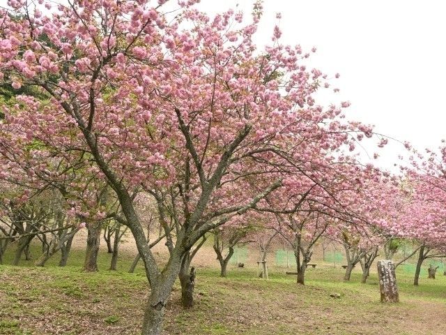周囲の新緑のなかのぼたんざくらは見応えがありました。駐車場から公園までは急勾配の坂道でしたがゆっくりゆっくりのぼって濃いピンクのさくらとご対面できます。しかし残念なことは、道案内が不親切です。トイレが非常に汚いです。犬を連れてきた人の汚物処理が不十分です。平日にいったものの感想です