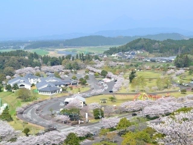 観覧車やゴーカート、貸しボート、リフトやスライダーなどの遊具をはじめ、温泉やキャンプ場など設備が充実している憩いの場。約5000本の桜を植栽しており、ほかにもツツジなど四季を通じて美しい花が楽しめる。観覧車や高台の展望台から桜を眺めるのがおすすめ。