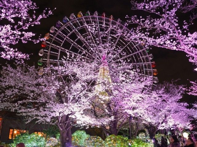 人気アトラクションがそろう「よみうりランド」が約800本の桜で彩られる。空中からのお花見ができるゴンドラ「スカイシャトル」や、最高時速110kmで桜の中を駆け抜ける「バンデット」、全長180mの桜の並木道など、桜の楽しみ方はさまざま。夜に美しくライトアップされた桜も見どころのひとつだ。また、よみうりランドに隣接する新感覚フラワーパーク「HANA・BIYORI」(入園料別)でも、春の桜をはじめ、四季折々のうつろいを存分に体感できる。