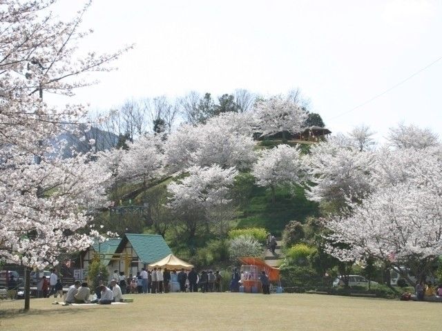つるぎ町の丘陵地にある大型公園で、多種の桜が咲き誇る県内有数の桜の名所。桜のほかにもたくさんの草花も植えられており、スイセンやアジサイなど四季を通じて色とりどりの花が楽しめる。また、園内にはローラー滑り台など多くの遊具もあり、家族連れでのお花見におすすめだ。