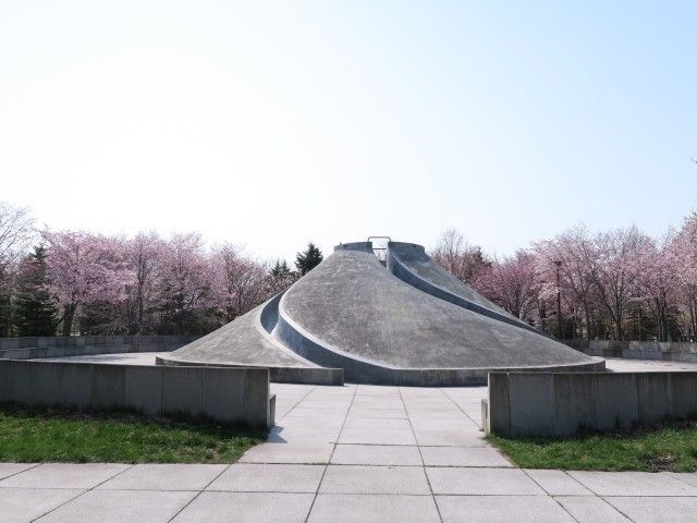 広大な面積を持った、札幌を代表する公園のひとつ。基本設計は世界的に有名な彫刻家イサム・ノグチが担当しており、公園全体がひとつの彫刻として造成されている。園内のサクラの森には、遊具を囲むようにエゾヤマザクラなど約1600本が植えられ、開花シーズンには大人も子どもも楽しめるお花見スポットとなる。