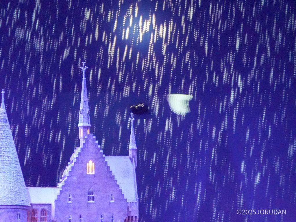 さらにこのプロジェクションマッピングでは、たまにヘドウィグが飛ぶ姿も見られます。ただし、いつ飛んでくるかはわかりません。気まぐれなヘドウィグ、見逃せない演出となっています。