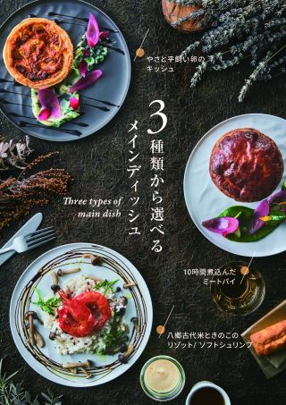 花や植物に囲まれて、茨城県産や地元八郷産の新鮮食材を味わえる「レストラン ローズファーム ハウス」。人気のランチプレート[束]が、秋冬の新メニューにリニューアルしました。地元の素材を使った3種のメイン「やさと平飼い卵のキッシュ」「10時間煮込んだミートパイ」「八郷古代米ときのこのリゾット/ ソフトシュリンプ」はどれも見た目にも美しく、実りの秋を実感する一品。ランチプレートを持って、秋バラが咲き誇る園内のお好きなベンチで、景色と一緒にまるごと味わってください。