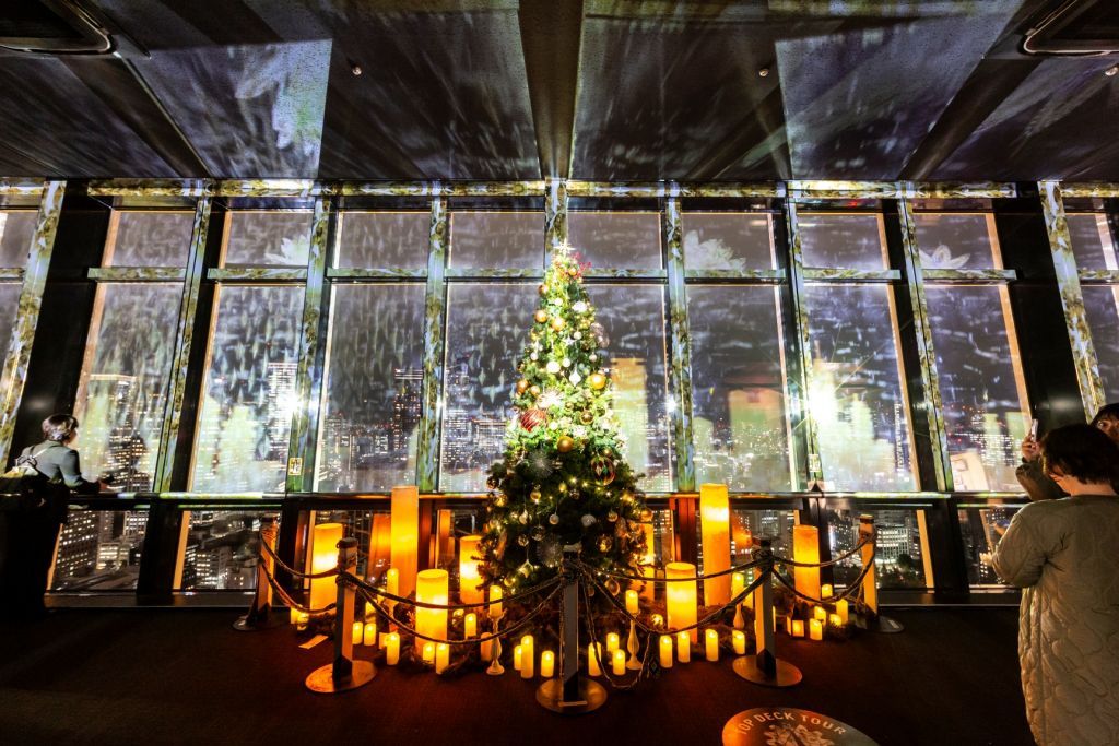 メインデッキ2階北面では、夜景に季節ごとの映像を融合させたプロジェクションマッピングを上映。ホリデーシーズンに向け、輝きを増しはじめる東京の街を、高さ150mの幻想空間でお楽しみいただけます。