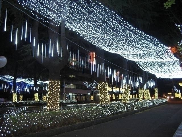 青空公園は綺麗ですが、御幸通はいまひとつです。統一感がなく、中途半端。ヒマラヤ杉なんかは腹巻きをしているようにしか見えません。もっと都会のイルミネーション(京都のロームとか)を参考にするとか、演出家に依頼するとかしたほうがいいと思う。並木道としての潜在能力は高く全国区になれそうなのに残念。