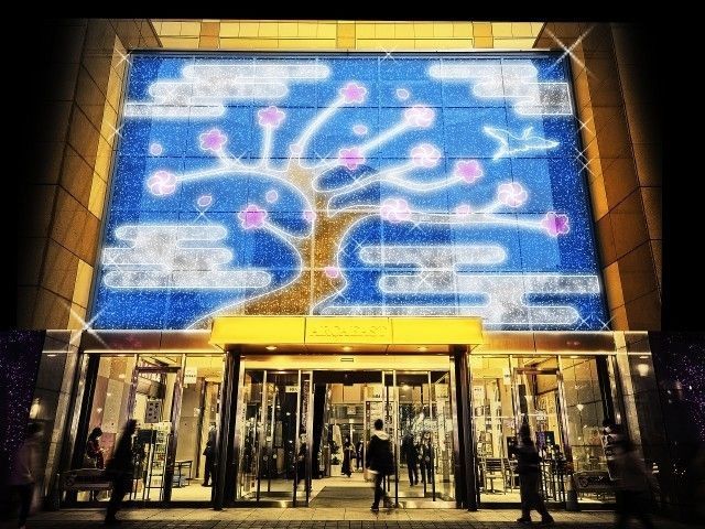 JR錦糸町駅北口の「アルカタワーズ錦糸町」では、東西500mに広がる広大なエリアに約27万球のLEDを装飾。「墨田区」・「錦糸町」という街をテーマに、地域に寄り添ったイルミネーションを展開。アルカイースト正面入口壁面や、アルカキットステージのツリーのほかに、歩道の植栽や街路樹もLEDで装飾され、伝統工芸「江戸切子」や浮世絵師「葛飾北斎」ゆかりの地として知られる下町風情を演出する。