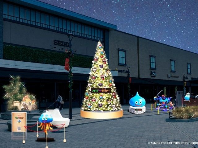 今年のウィンターイルミネーションは、スクウェア・エニックス「ドラゴンクエスト」オリジナル装飾に合わせて開催。期間中、場内各所に「スライム」や「ギガンテス」、「ゴーレム」など人気モンスターが、クリスマスツリーの装飾やパネル、オブジェになって登場し、施設全体をドラクエワールドに演出する。夜にはシャンパンゴールドのイルミネーションに照らされ、さらに賑やかで煌びやかな光の世界に。あたたかな光に包まれ非日常を感じるアウトレットで、「ドラゴンクエスト」の装飾と共に、ホリデーシーズンのショッピングを楽しむことができる。