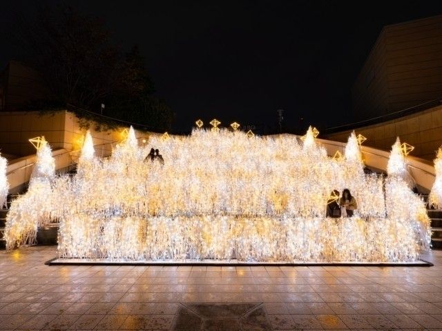 南海なんば駅周辺がイルミネーションで光り輝くなんばの風物詩。なんばパークス、なんばカーニバルモール、高島屋大阪店などに加え、今年は新たになんばCITYもスポットに仲間入り。なんばパークスの9階から2階まで連なる「光の滝」が、音楽とともに美しく輝く光景は圧巻。8階円形劇場の「煌(きら)めく草原」では、美しい草原のような光に包まれる。また、イルミネーションに合わせて、毎年好評の「イルミネーションダイビング」を今年も開催。ARグラスをかけると水中旅が楽しめる。