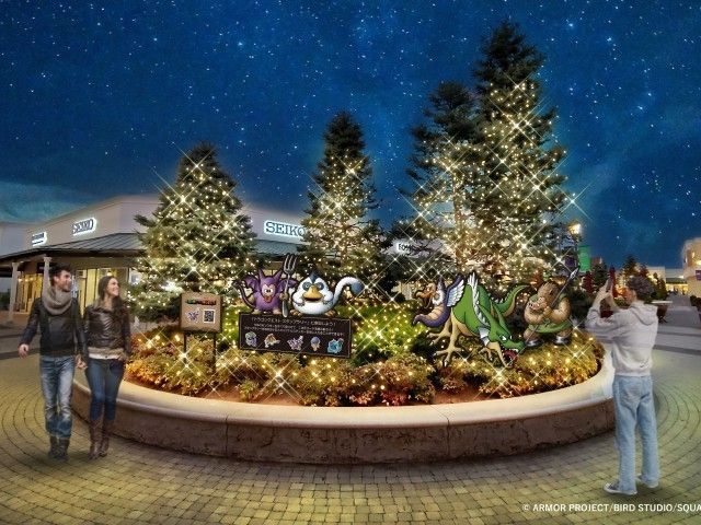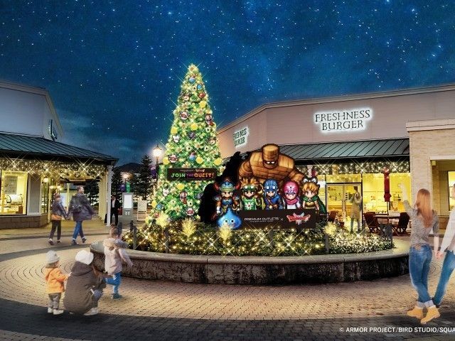 今年のウィンターイルミネーションは、スクウェア・エニックス「ドラゴンクエスト」オリジナル装飾に合わせて開催。期間中、場内各所に「スライム」や「ギガンテス」、「ゴーレム」など人気モンスターが、クリスマスツリーの装飾やパネル、オブジェになって登場し、施設全体をドラクエワールドに演出する。夜にはシャンパンゴールドのイルミネーションに照らされ、さらに賑やかで煌びやかな光の世界に。あたたかな光に包まれ非日常を感じるアウトレットで、「ドラゴンクエスト」の装飾と共に、ホリデーシーズンのショッピングを楽しむことができる。