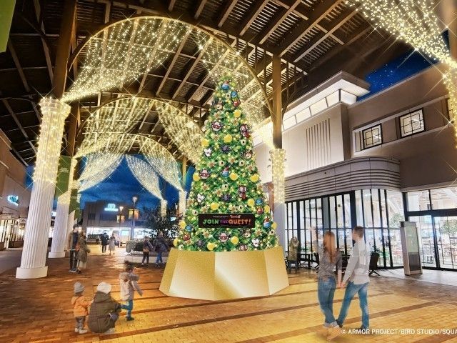 今年のウィンターイルミネーションは、スクウェア・エニックス「ドラゴンクエスト」オリジナル装飾に合わせて開催。期間中、場内各所に「スライム」や「ギガンテス」、「ゴーレム」など人気モンスターが、クリスマスツリーの装飾やパネル、オブジェになって登場し、施設全体をドラクエワールドに演出する。夜にはシャンパンゴールドのイルミネーションに照らされ、さらに賑やかで煌びやかな光の世界に。あたたかな光に包まれ非日常を感じるアウトレットで、「ドラゴンクエスト」の装飾と共に、ホリデーシーズンのショッピングを楽しむことができる。