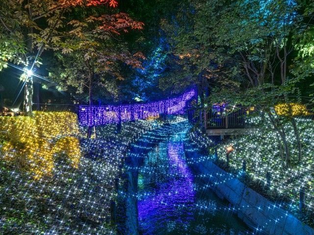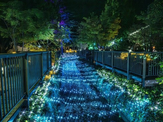 南側の和傘を使ったイルミネーションは幻想的で他にはないイルミネーションで、心が和みました。