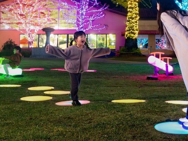 4年目を迎える今年のイルミネーションイベントは、昨年よりもさらにエリアを拡大して開催!高さ20m級のセコイアが煌めくツリーへと姿を変え、光るシーソーや音の出る光のステップなど、体験型の演出も盛りだくさん。大人も子どもも楽しめる南大阪最大級のイルミネーション。会場内のヒュッテでは、クリスマス雑貨や温かいドリンクも販売。愛犬と一緒に入園できるのも魅力のひとつ。今年のテーマは「ハーベストの丘」。イルミネーションで表現する夜のハーベストの丘を楽しもう。