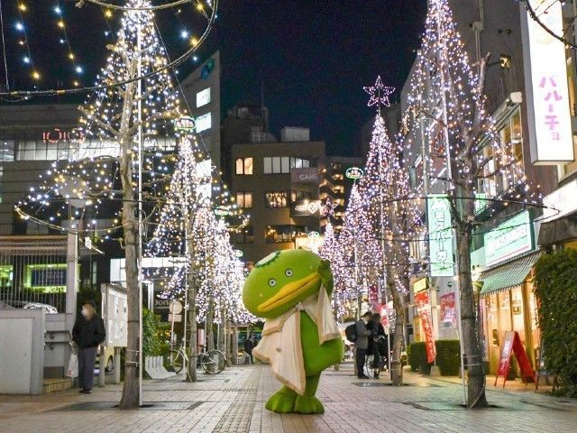 志木市観光協会では、志木市の冬の風物詩として、志木駅東口駅前にイルミネーションを設置。クリスマスツリーの形に彩られたトウカエデの梢部分のイルミネーションの一部は、なんと志木市の人気キャラクターであるカパルがモチーフになっている。ここでしか見ることのできないユニークでくすっと笑えるイルミネーションを眺めながら、ゆったりとした一時を過ごすことができる。
