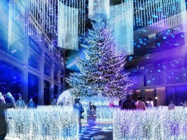 今年のテーマは「眩いばかりの白銀世界、草原のクリスマス」。1Fアトリウムに高さ約13mの「シンボルクリスマスツリー」が輝きそびえ、周りを取り巻くように白銀のベールが上空に浮かぶ。会場全体では、約6万5千球のLEDを使用。まばゆい光に包まれた全長約100mに渡る「白銀の草原イルミネーション」や、全長4m、高さ3mの「かまくらオブジェ」もフォトスポットとして楽しめる。期間中は、音楽に合わせてアトリウム全体が光り輝く、「白銀の草原ライティングショー」を毎日実施。