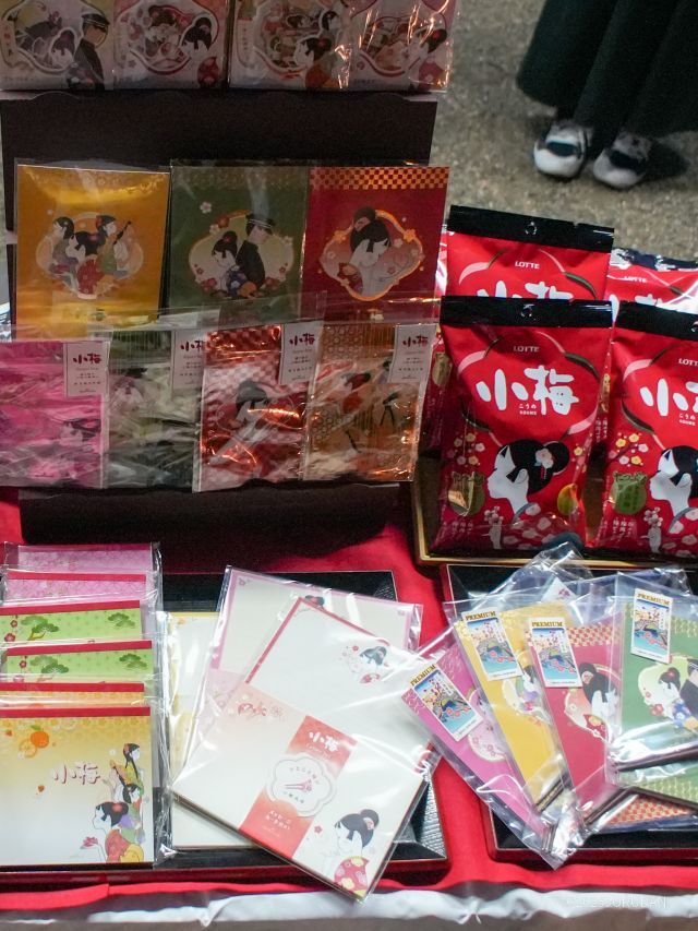 会場では風情ある赤や黄色の紙提灯が販売されており、これを持って散策することで一層の雰囲気を味わうことができます。柔らかな光が足元を照らし、幻想的な夜の散策を優しく演出していました。お土産も充実しており、和の小物販売や水戸光圀公にゆかりのある茨城の物産品など様々。
