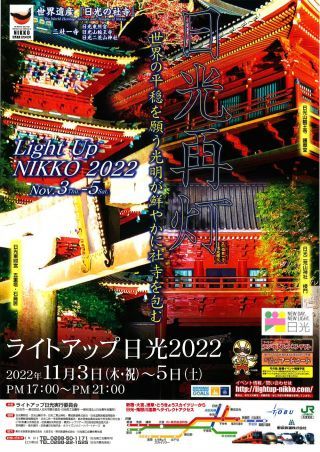 栃木県日光市では、世界遺産である「日光の社寺」をはじめ、大鳥居や中禅寺湖畔、日光国立公園内の華厳の滝など、数々の観光名所をライトアップやイルミネーションで色鮮やかに演出するイベントを、この秋より順次開催いたします。日光の新しいブランディング「NEW DAY, NEW LIGHT. 日光」にふさわしく、夜の日光を明るく照らし出すイベントです。