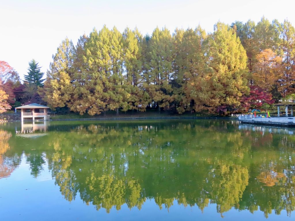 - 昭和大池の北側にはメタセコイヤの並木がある。褐葉(かつよう)になった葉は赤茶色になっていた。