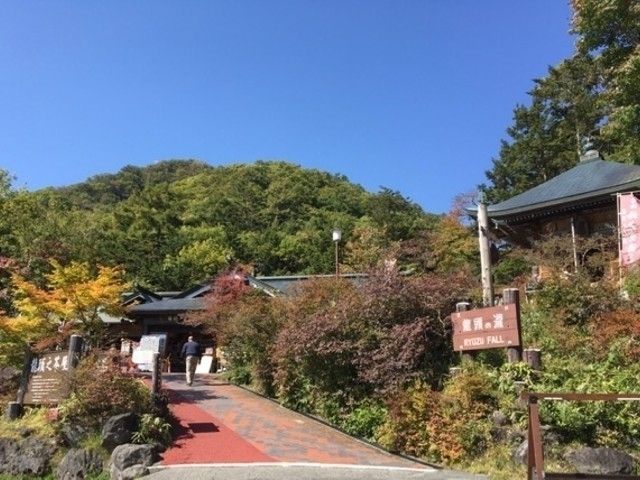 JR日光線日光駅または東武日光線東武日光駅から東武バス湯元温泉行きで1時間5分、竜頭の滝下車、徒歩2分