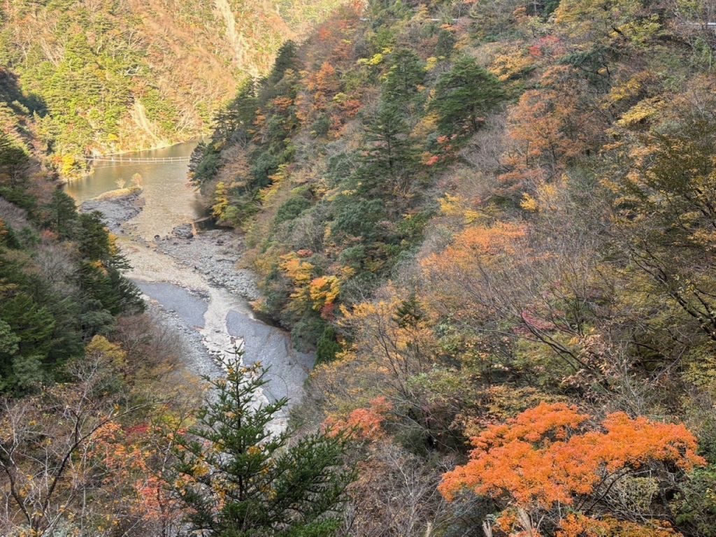 初日はあいにくの小雨でしたが、紅葉も夢の吊り橋までのハイキングコースも十分楽しめました。ネット等の情報では見ごろとなっていましたが、落葉もかなり多く、