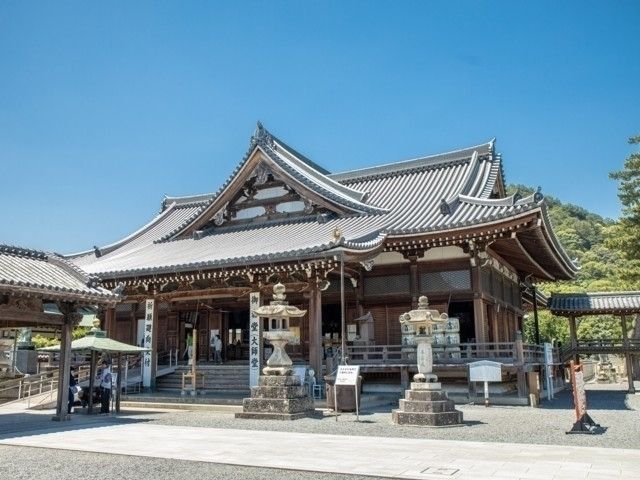 宝亀5(774)年、讃岐の豪族の家に生まれた空海が真言宗を開いて以来、約1200年の歴史を刻む。境内は東西に分かれていて、金堂、五重塔がある東院を「伽藍」、御影堂などが建つ西院を「誕生院」と呼ぶ。御影堂の地下には、真っ暗闇の中を進みながら精神修養を行い、重ねた罪を取り払う「戒壇めぐり」がある。また、国宝の「金銅錫杖頭」、「一字一仏法華経序品」など多くの宝物を所蔵する。裏にそびえる香色山には四国霊場を模した“ミニ88ヶ所”があり気軽にお参りできる。