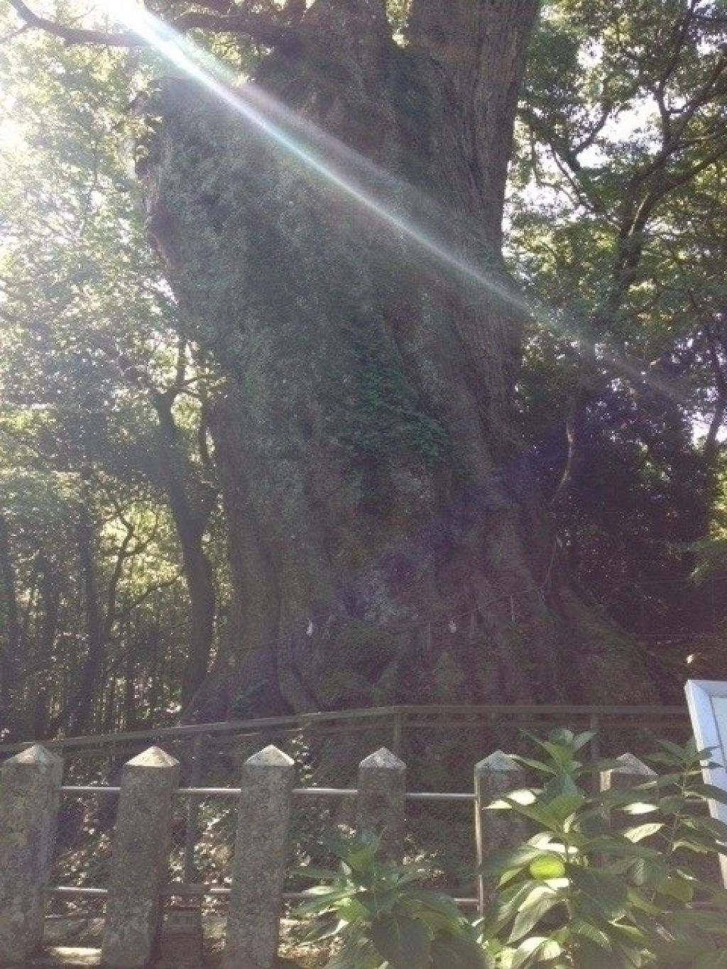 樹齢3000年、天然記念物のクスノキが茂る深い森に鎮座する