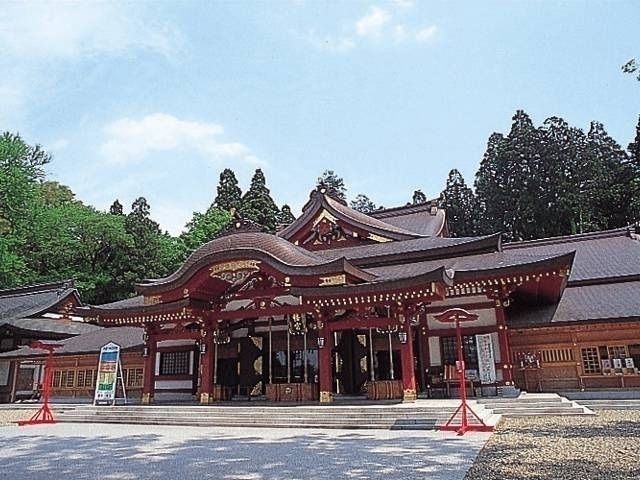 延宝8(1680)年の造営以来、藩主から庶民に至るまで広く崇敬を集めてきたが、とくに勝負の前に祈るとご利益があるとして源氏に崇められた。華やかに飾り立てた100頭ほどの馬が、シャンシャンと鈴を鳴らし行進する「チャグチャグ馬コ」の終着点がここ。また、手を触れずに魚をさばく神事・包丁式は6月に境内の高倍神社で行われる。元旦0:00の太鼓の音を合図に、大勢の参拝者が初詣に訪れる。その人数は例年20万人以上。色鮮やかな社に手を合わせ新年を迎える。