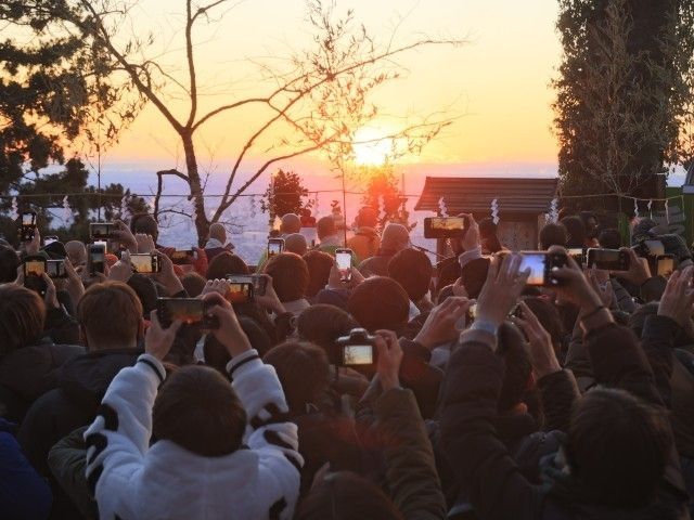 高尾山口駅からケーブルカー駅に行くと5:00から運行 時間は4:00歩いて登り灯りあって途中下山の人皆んな懐中電灯持ってます やっと駅広場まで廻りは御来光待ちの人が通路に座っていて身動き出来ず 真っ暗な中途中まで行きましたが諦めて下山し躓いて転んだらたいへん2019
