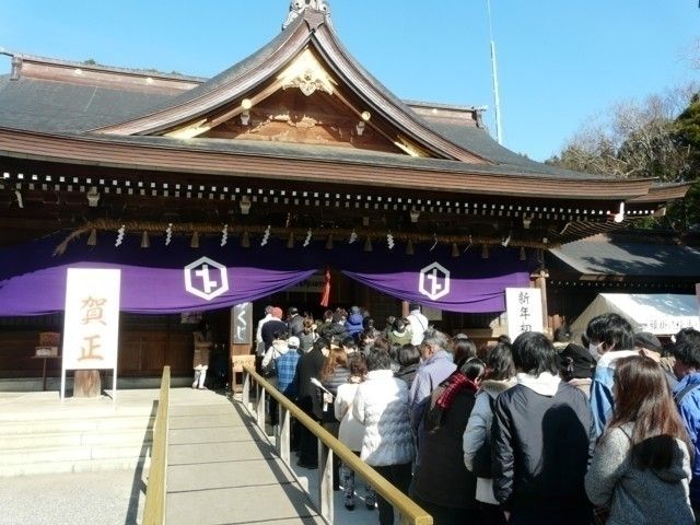 私は、此処で結婚式をした事もあり、毎年初詣にでかけます。 駐車場には苦労しますが、砂利を歩き趣きの有る正門、本殿の前では、新年新たな気持ちになり落ち着く場所でもあります。 本殿前には、広く新設された休憩所もあり、ベビーさんを連れていても安心。 また、本宮山の奥之院も初日の出スポットですよ!運が良ければ富士山が拝めるかも!