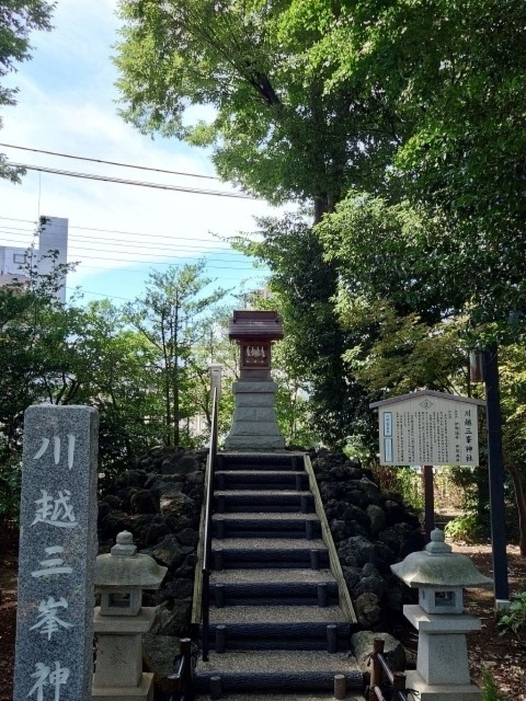 長元3(1030)年、源頼信公による創建千年の古社。古来「健康・勝負」の神様と知られ、「厄除・安産・合格祈願」の参拝が多い。境内にある川越三峯神社は「開運・運気上昇」の神様として信仰を集めている。また、川越市内でよくみられる「花手水」の発祥の地として有名。大晦日からは川越市内の中学生による干支のジャンボ絵馬が公開され、初詣には約8万人の参拝者が訪れる。