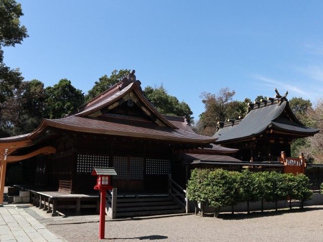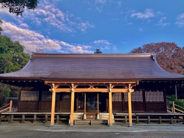 源頼朝も武運長久を祈ったという関東最古ともいわれる大社。鎌倉時代から幕府、武士の崇敬を集め、江戸時代には徳川家康より四百石の神領を与えられ、代々の将軍の名で朱印状が残されている。また、現在でも古文書、鏡、刀剣など多数の文化財を所蔵している。元旦には、国の重要無形民俗文化財である土師一流催馬楽神楽が奉演される。三が日は約47万人もの参拝者でにぎわう。