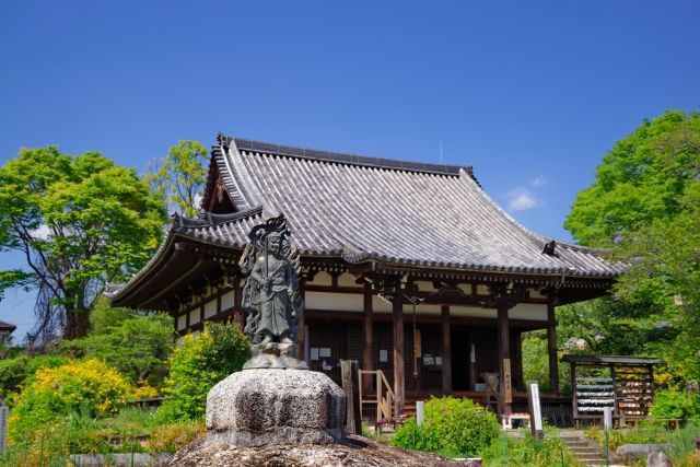 平城京の鬼門鎮護のため堂塔が造営されたと伝えられている寺。咲く春の山吹、初夏のアジサイ、初夏・秋のコスモスなど花の寺としても知られています。