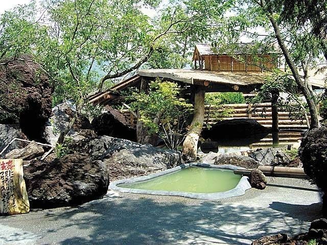 敷地面積1000坪の巨大温泉施設。石の露天風呂は、巨岩や溶岩石を置いたダイナミックなもの。食事では、各種メニューにサラダバーがついている。中でもあか牛焼きしゃぶ御膳やあか牛カレーなどのあか牛シリーズが人気だ。