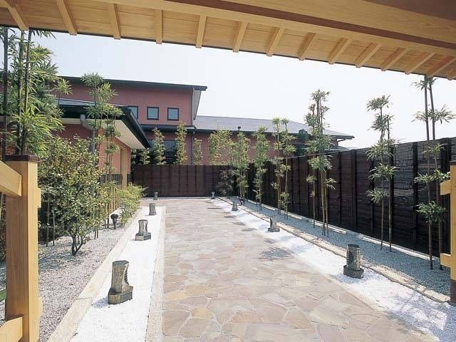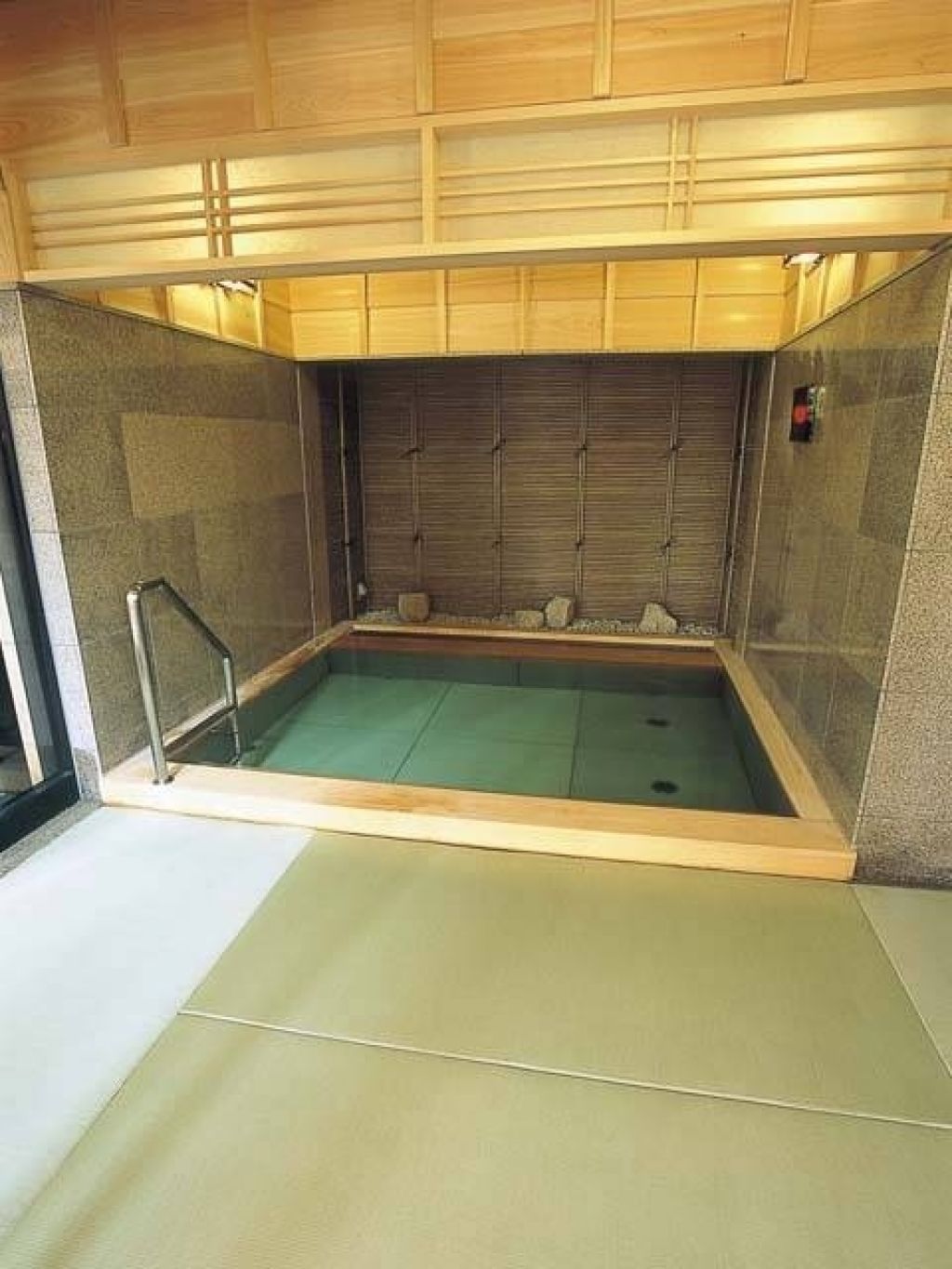 地下1100mから汲み上げた、源泉かけ流しの温泉施設。端整な日本建築で、竹林の風情を感じる露天風呂や凛とした内湯のほか、待ち合い処も天然木を生かしたナチュラル志向な造作。