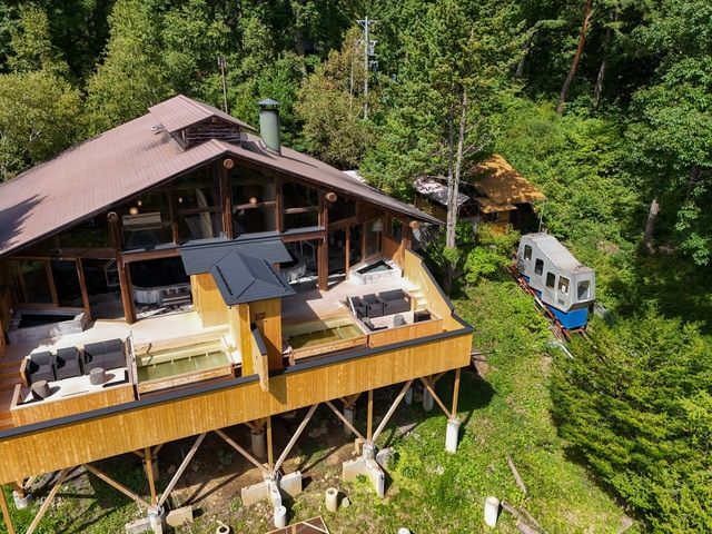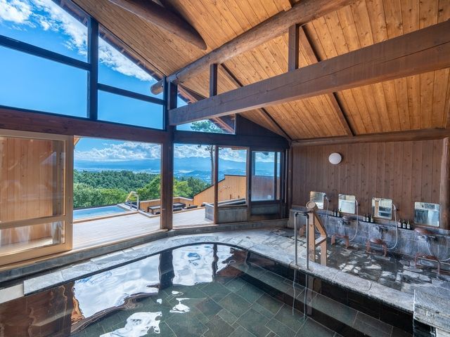 高峰高原のほど近く、四季折々に美しい浅間山麓にたたずむ老舗の湯宿。温泉は約900年の歴史を刻む自家源泉。浴場は内湯ほか、山頂にある「雲上の停車場」へは、名物の登山電車で全長130mのミニトリップが温泉気分を盛り上げてくれる。「雲上の停車場」は絶景が広がる露天風呂「雲の助」やカフェ&バー「時刻のない待合室」、サウナスペース「TOJIBA」(要予約)も備え、湯あみを満喫したあともゆっくりと過ごせる。