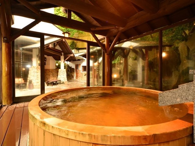 城郭風の純和風の宿。露天風呂をはじめ多彩な湯船が楽しめる。湯は肩こり、胃腸病、婦人病などにいいといわれる。入浴・休憩・食事がセットになったプランもある。