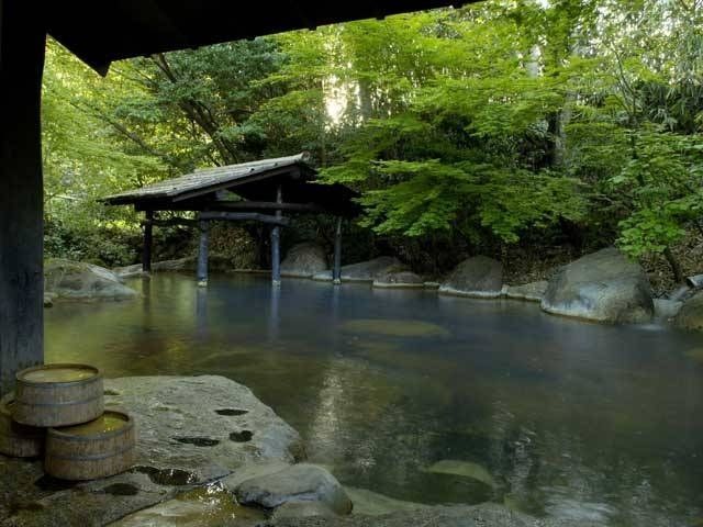 温泉街から離れた静かな一軒宿。およそ3000坪の敷地内に、混浴露天風呂や女性用露天風呂などがある。二つの源泉をもち、内風呂の湯は少し青みを帯びている。日帰り入浴は露天風呂のみ、湯上がりは無料の休憩コーナーが利用できる。