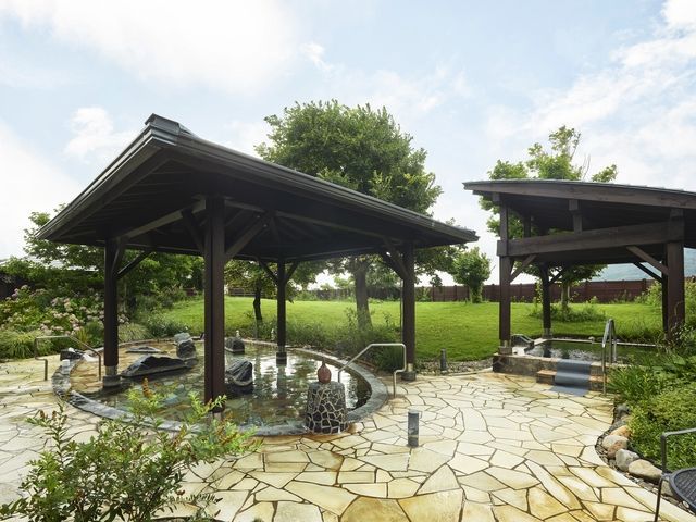 ワイナリーの敷地内にある4000冊の本とワインが愉しめる源泉掛け流しの温泉施設。角田山を望む露天風呂や、アロマ岩盤浴やスパ、ヘアサロンなど設備が充実。宿泊施設もある。