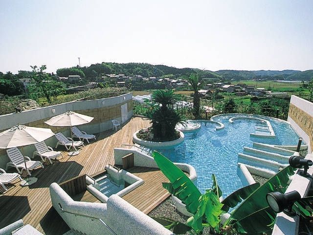 高台にあり眼下には田園風景が広がる。体を芯からあたためて代謝を促進する砂風呂がある。スパゾーンでは水着着用でペア浴やチャイルドスパなど10種のゾーンが楽しめる。高圧酸素ボックス(有料)もあり。
